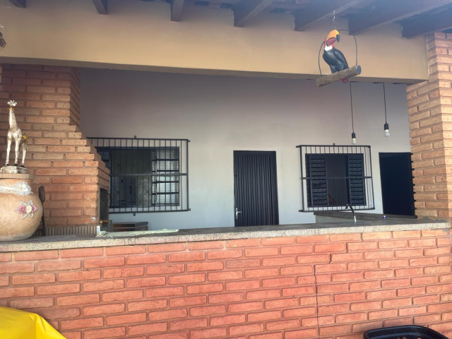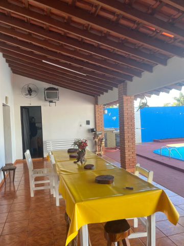 Rancho tem quatro 3 com ar condicionado, 1 com ventilador, 1 bebedouro, 1 frízer, 1 micro-ondas, 2 fogão a gás ,churrasqueira, 1 geladeira grande, 1 TV. Piscina grande, 2 banheiros um dentro e outro fora da casa.