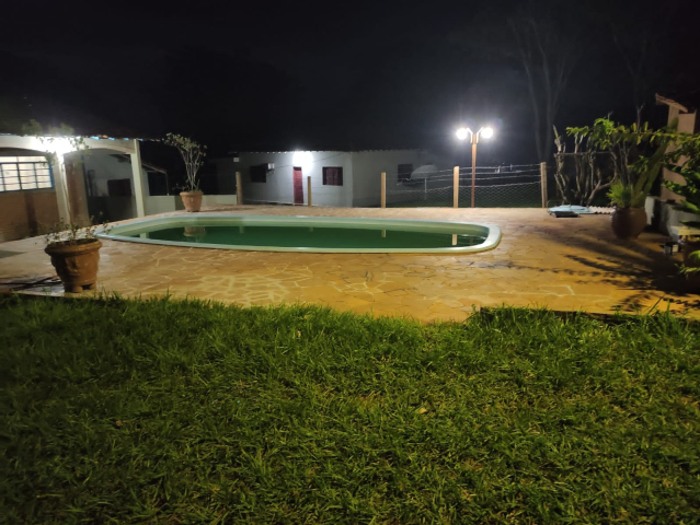 Descrição do Rancho : 03 dormitórios - sendo um suíte - {Cada quarto com uma cama de casal e uma cama de solteiro}, 03 banheiros, sala ampla, cozinha, quiosque com churrasqueira ,piscina, varanda com churrasqueira e fogão a lenha, ambiente arborizado, local cercado e murado, fundos para o Rio Tomazinho, varanda na frente e nós fundos, ventiladores de teto em todos os cômodos Ar condicionado em dois dos 3 dormitórios