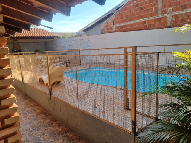Descrição do Rancho; Área de lazer, churrasqueira, mesa de sinuca, wi-fi, piscina com grade, sala, cozinha, 3 quartos sendo 1 suíte, ventiladores e banheiros.