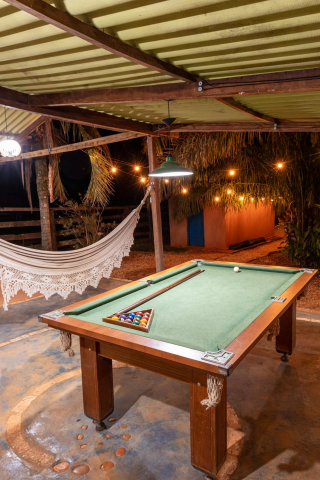 Descrição do Rancho: Nosso espaço de lazer é completo: Piscina aquecida, área verde ampla e arborizada, mesa de bilhar coberta, horta com temperos e ervas medicinais. Espaço para fogueira, perfeito para noites especiais sob o céu estrelado. A Casa Sede acomoda confortavelmente até 11 pessoas em camas, com estadia mínima de 2 diárias. sendo:5 quartos, 2 suítes de casal com ar-condicionado, uma delas com uma cama de solteiro adicional. 3 quartos com duas camas de solteiro cada, todos com ventilador de teto — assim como nossa sala de estar. Wi-Fi e Smart TV, para garantir conectividade e entretenimento durante a estadia. Cozinha gourmet externa completa, com: freezer, fogão e forno à lenha, churrasqueira, fogão industrial, geladeira. Todos os utensílios de cozinha necessários