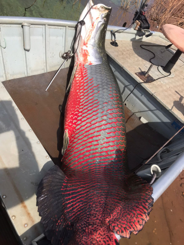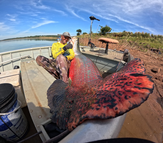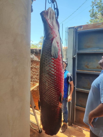 Foi pescado um pirarucu impressionante, pesando 165 kg e medindo 2,50 m de comprimento nesse mês de novembro de 2025.