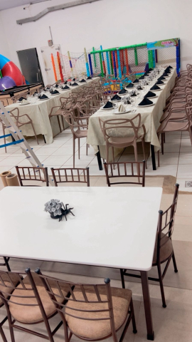 Nosso salão de festas é o espaço ideal para transformar momentos especiais em lembranças inesquecíveis. Perfeito para batizados, aniversários, casamentos, chá de bebê, confraternizações e eventos em geral, oferecemos um ambiente amplo, aconchegante e bem estruturado para receber seus convidados com conforto e elegância. Contamos com um espaço versátil, que pode ser adaptado conforme o estilo do seu evento, além de ótima localização e estrutura completa. Para maior comodidade, também oferecemos a opção de buffet, com cardápios variados e personalizados, preparados com qualidade e carinho para agradar a todos. Aqui, cada detalhe é pensado para que sua celebração seja leve, organizada e especial. Entre em contato e venha realizar seu evento com a gente.
