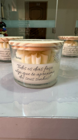 O resultado é algo delicado e elegante, capaz de tornar qualquer momento ainda mais especial e aconchegante. As Velas Aromáticas e Aromatizadores de Ambiente feitas à mão e com carinho — cada produto recebe atenção individual, garantindo qualidade e exclusividade. Produtos de qualidade e acabamento refinado — cera vegetal, pavio apropriado, embalagens e rótulos personalizáveis. Personalização total — você pode definir o aroma, a cor, o rótulo (nome, data, frase especial, logo, mensagem), tipo de embalagem, fitas, detalhes decorativos.  Aromas para todos os estilos — desde fragrâncias suaves e delicadas até aromas mais marcantes, tudo pensado no seu bem estar e aconchego. Versatilidade de uso — ideais para casamentos, aniversários, batizados, chás de bebê, maternidade, formaturas, eventos corporativos… ou simplesmente para decorar e perfumar a casa. Significado afetivo e duradouro — mais do que itens decorativos, são lembranças que evocam emoções, criam memórias e transformam o ambiente com cuidado e sensibilidade.