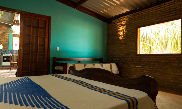 Descrição do Rancho : a casa Bacuri que acomoda até 6 pessoas. Possui uma suíte bem espaçosa, com 1 cama de casal,1 bicama, para 2 solteiros Sala e cozinha conjunta, com mais uma cama de casal, E mais um banheiro.