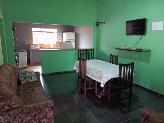 Descrição do Rancho: Casa com 2 quartos, para 3 pessoas em cada. Possuí ar condicionado. Cozinha montada completa, geladeira, fogão , freezer e talheres, sala com mesa, sofá e TV, varanda: mesas e churrasqueira. Todas com Wi-Fi e câmera de segurança.