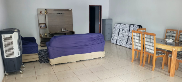 Rancho com 3 quartos com ar condicionado e banheiro, área de lazer com churrasqueira e cervejeira e um banheiro na parte externa tbm, garagem pra 4 carros e uma piscina de fibra